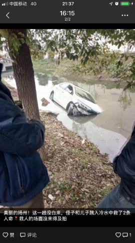 2月5日大年初一,在扬州广陵区头桥镇安阜村发生这样暖心的一幕:23岁的mg4355官网18级研究生高宇回乡探亲,看见汽车翻车掉入河里,他毫不犹豫地脱下羽绒服,跳进冰冷的河水中救人。