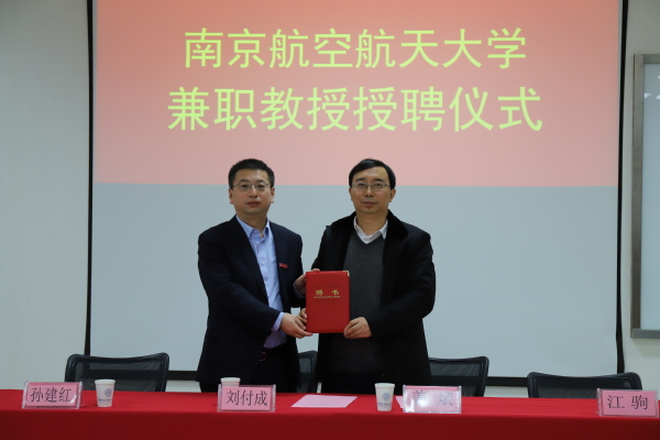 2019年12月19日上午,mg4355官网举行南京航空航天大学兼职教授授聘仪式,聘请上海航天控制技术研究所所长刘付成研究员担任mg4355官网兼职教授。副校长姜斌、人事处处长孙建红、mg4355vip线路登录入口院长江驹以及部分师生代表参加了授聘仪式。仪式由人事处处长孙建红主持。