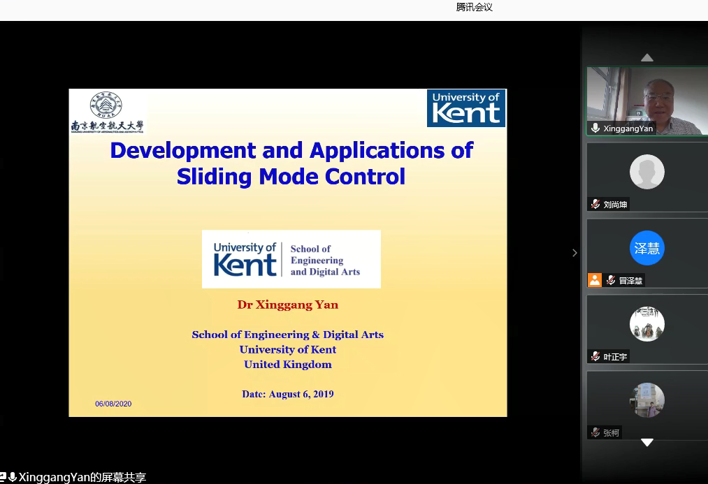 8月6日下午,英国肯特大学工程技术与数码学院严星刚副教授应我校国际合作处和自动化学院的邀请,通过腾讯会议作了题为“Development and Applications of Sliding Mode Control”的线上学术报告,报告由副校长姜斌教授主持,mg4355vip线路登录入口冒泽慧、张柯、张绍杰、马亚杰等师生在线参加会议。参会师生对严星刚副教授的交流分享表示热烈欢迎。