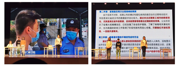 《热干面战“疫”记》就取材于这些故事,讲述mg4355vip线路登录入口研一学生程晓及同学们,充分发挥各专业、兴趣特长,为抗疫贡献力量的优秀事迹。该剧体现了这场严峻斗争中,广大党员、干部充分发挥先锋模范作用,广大医务工作者发扬救死扶伤崇高精神,广大人民群众顾全大局,为全国抗疫斗争作出了重要贡献。