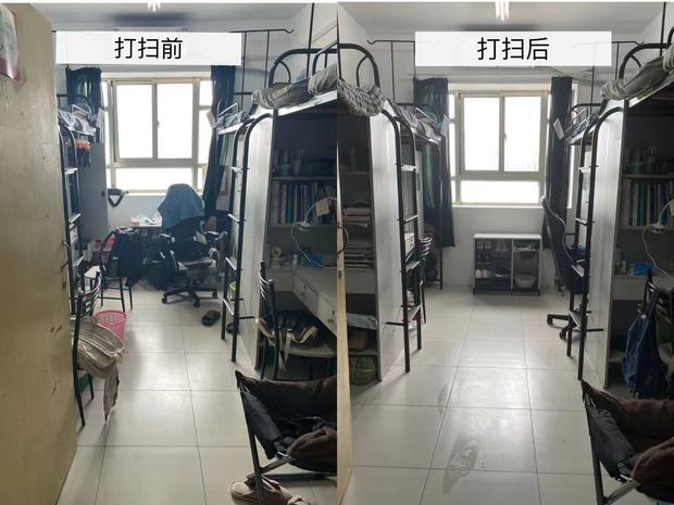 在交流中,同学们反映了怡园宿舍存在床铺小、洗衣机数量少的问题,辅导员们予以反馈。打扫后,学生们的宿舍焕然一新,学生对辅导员老师们表示了感谢,并表示往后会按照现在的标准保持下去,营造良好的学习和生活环境。