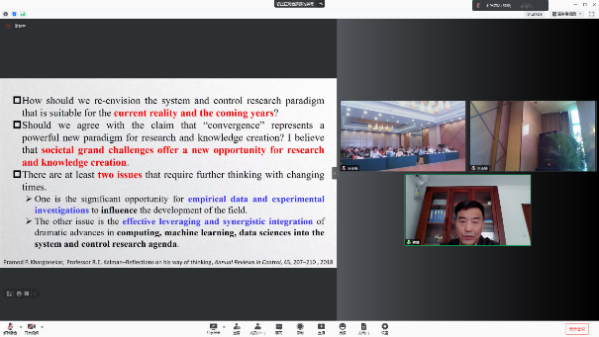 国家杰青、中国科学院系统所所长、《中国科学:信息科学》副主编、中国科学院数学与系统科学研究院张纪峰研究员,国家杰青、“新世纪百千万人才工程”国家级人选、中科院自动化所乔红研究员,中国自动化学会会士,IEEE Fellow、中国自动化学会“数据驱动控制、学习与优化”专业委员会创始主任、青岛大学侯忠生教授,国家优青、青年长江学者、国家“万人计划”领军人才、北京科技大学贺威教授,《中国科学》杂志社蒋恺副编审通过线上方式参与了本次会议。
