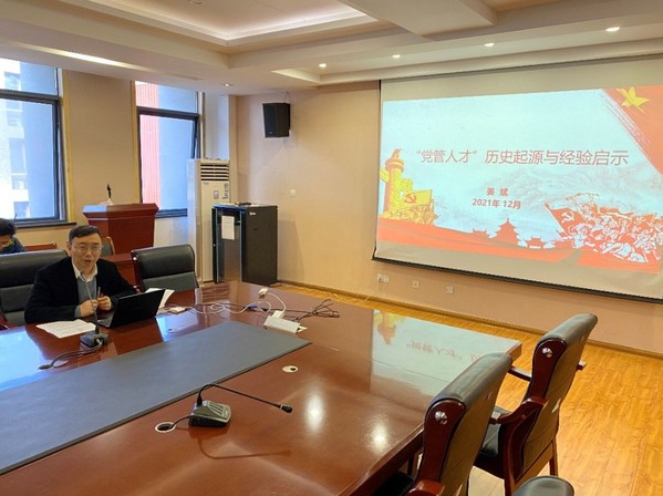 姜校长在此次专题党课中,首先提到了习近平总书记在2021年9月中央人才工作会议上讲话的精神传达,并对历史上两次全国人才工作会议和今年第一次以中央人才工作会议的名义召开的新时期人才工作会议进行了总结。其中着重强调了会议中提到的“八个坚持”。“八个坚持”首次系统概括提出了新时代人才工作的新理念新战略新举措。随后姜校长解释了“党管人才”的相关概念界定,包括人才的概念、“党管人才”和“党管人才”原则、“党管干部”和“党管人才”的关系,以及“党管人才”的历史起源和发展过程,包括其形成、演变、新时代部署与要求等。