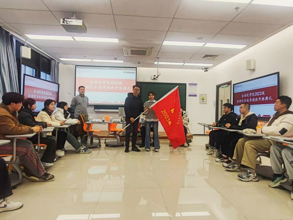 为纪念开班仪式,mg4355vip线路登录入口副院长魏佳丹向0323106班班长郭晓婷授班旗,并解答了同学们关于职业基础、科创项目选择等一系列最为关心的问题。魏佳丹指出,同学们可以从专业竞赛起步,锻炼自己的问题意识和解决方案的能力,为今后成为一名卓越工程师做好准备。